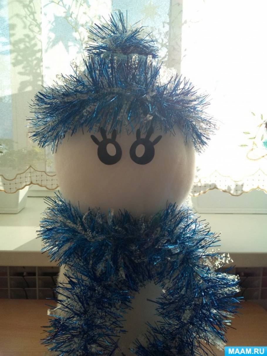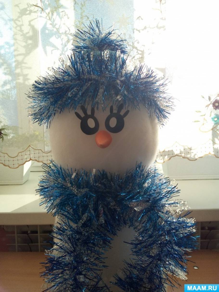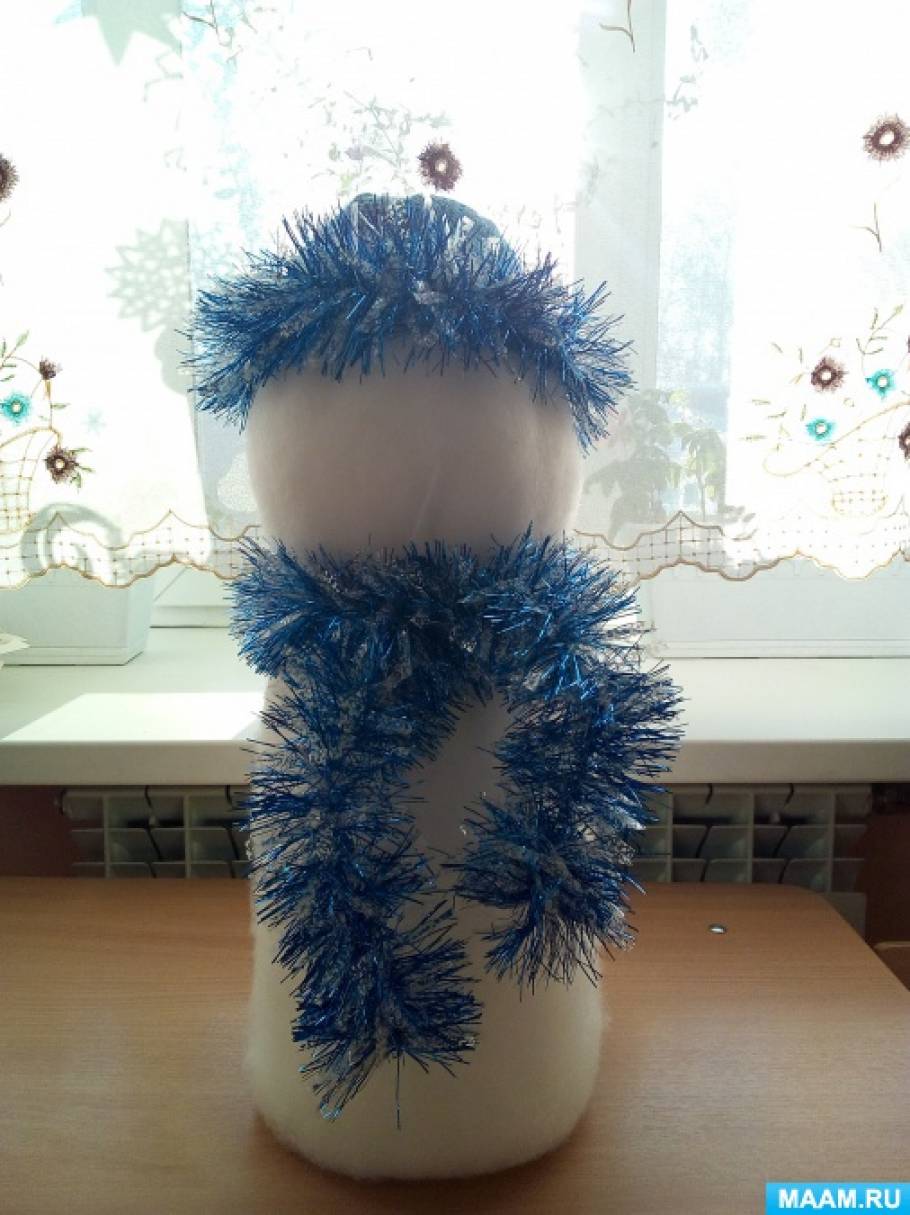 Пошаговое описание процесса изготовления снеговички из синтепона