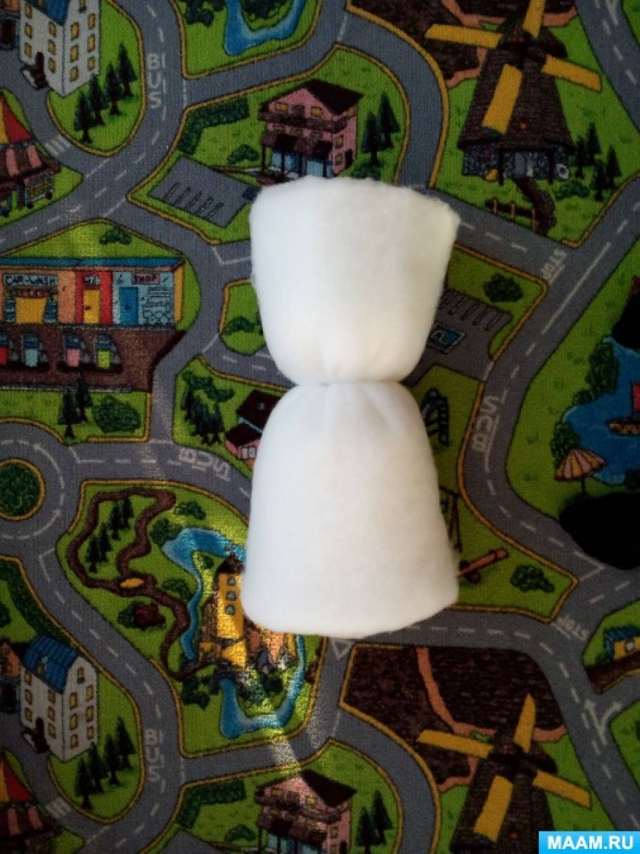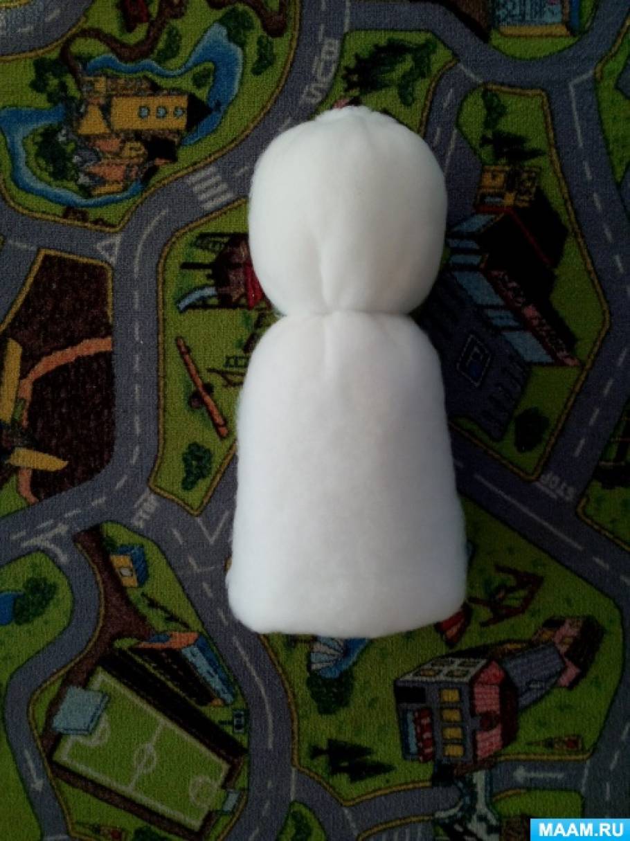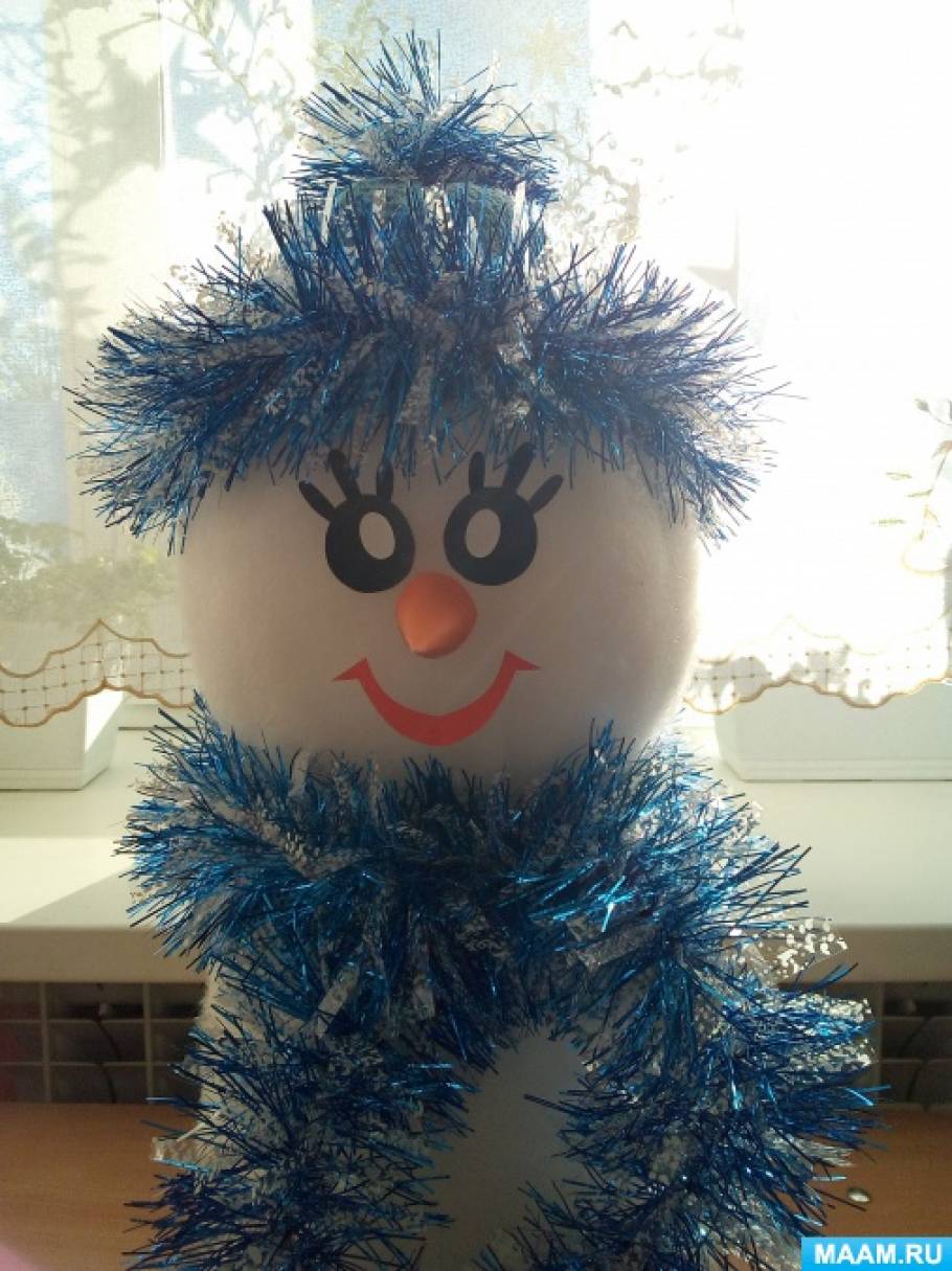 Пошаговое описание процесса изготовления снеговички из синтепона