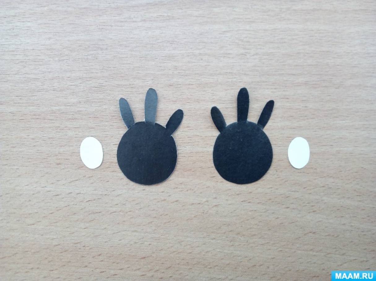 Шаг 10. Вырезаем чёрные глаза с ресницами,белые зрачки и склеиваем.