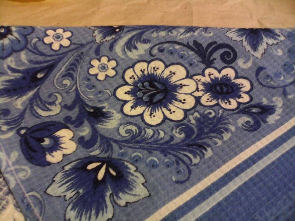 2. Из полотенца вырезаем элемент узора для фартучка Матрёшки.