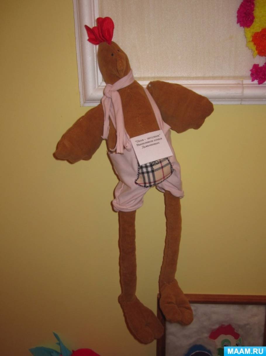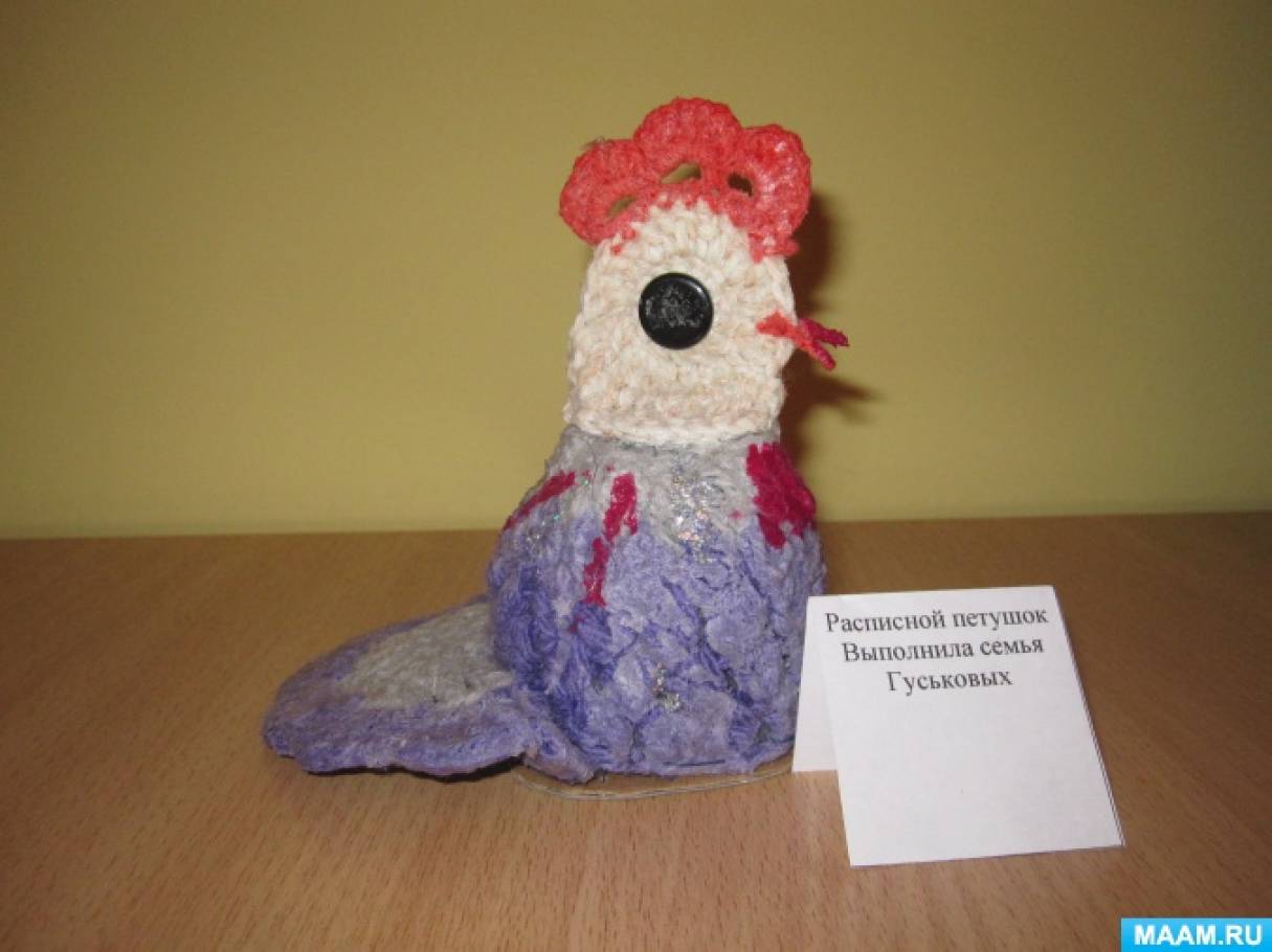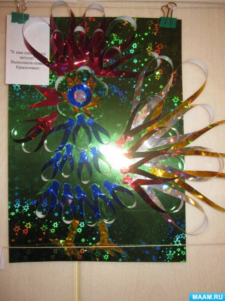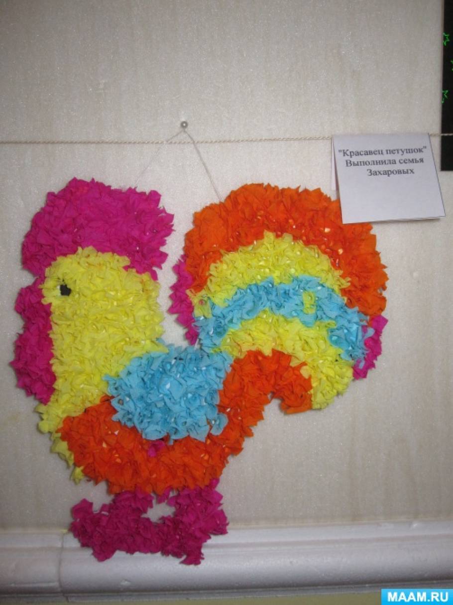 В моей группе, традиционно, была организована выставка под названием «Новогодний талисман». Родители активно поучаствовали в изготовлении поделки символа года — петуха. Выставка получилась интересная, яркая, творческая.