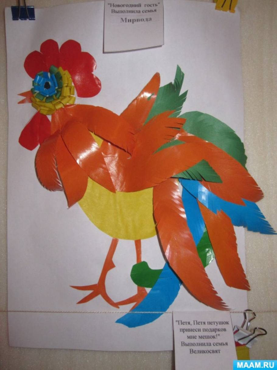 «Новогодний Петя». Фотоотчёт творческой работы детей Петух из бросового материала. Цель:Закрепить умение детей создавать поделки на основе цилиндра; -Развивать воображение, творчество; -Закрепить.