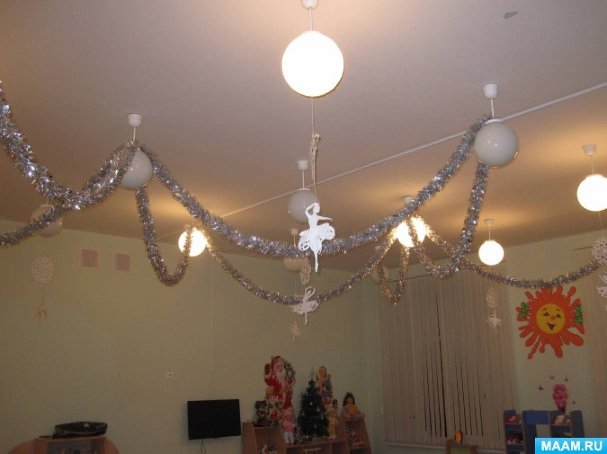 В детском саду это украшение группы, раздевалки, всевозможные выставки новогодних поделок.