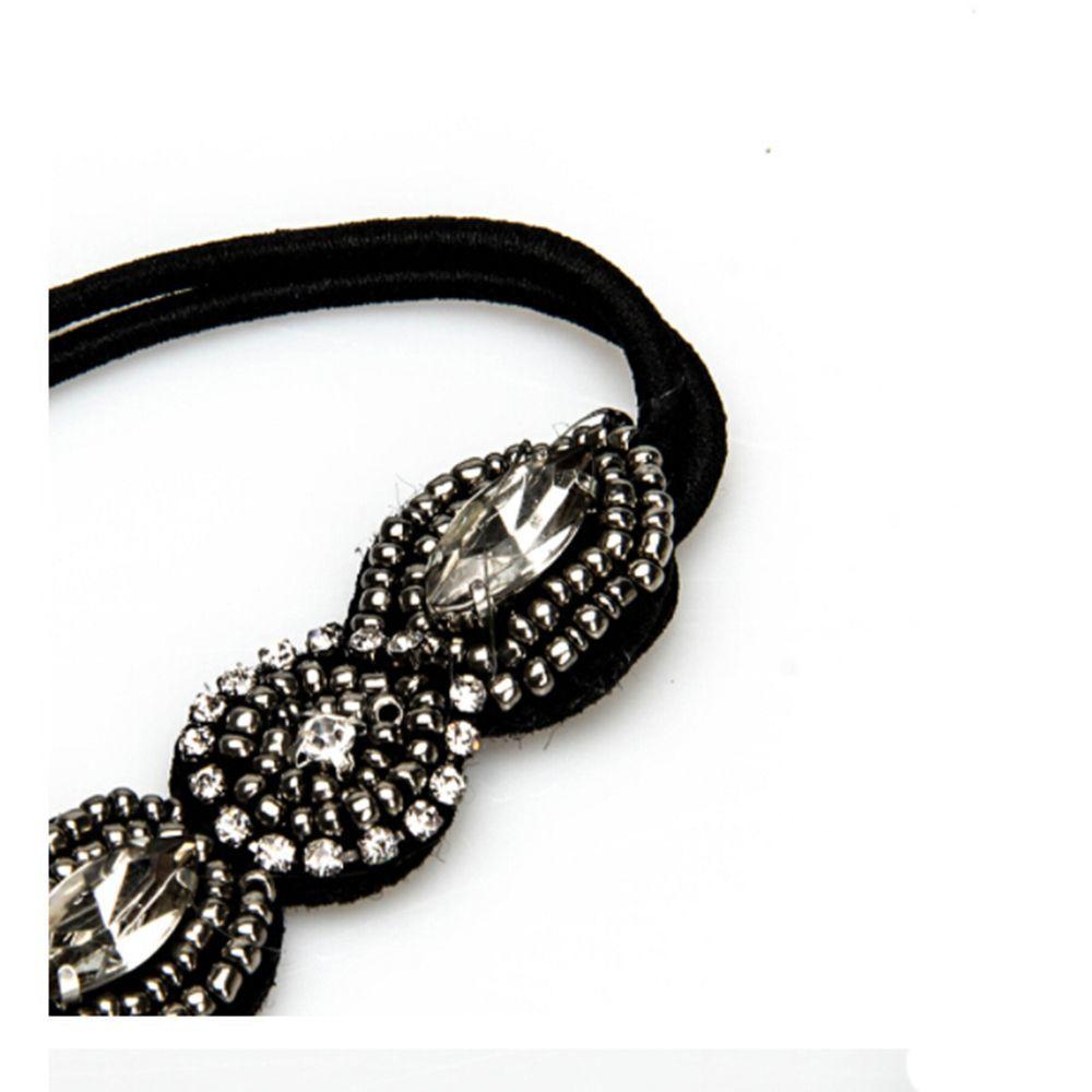 Во втором случае ободок своими руками из бусин делается намного проще. Бусины необходимо просто надеть на нитку, а затем обмотать обруч лентой, фиксируя их на нужном месте.