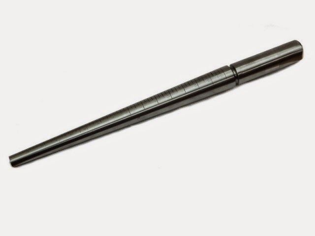 Первый вариант, не разрезая шинку растянуть кольцо на ригеле. Ригель может быть с рычагом, вмонтированный в стол. По всей длине ригеля есть шкала деления. Поэтому на таком ригеле легко будет не только увеличить окружность шинки, но и точно определить размер кольца.