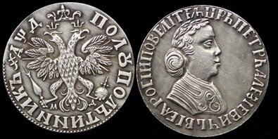 В период денежной реформы начали выпуск серебряные чеканки с 1630 года, затем стали вывозиться из Европы по причине нехватки собственного сырья в России. Именно на 1705 год пришелся выпуск чеканок с ошибками в дате. Вот такие экземпляры сегодня и ценятся среди нумизматов больше всего и быстро изымаются из оборота. Ведь их количество ограничено, а продажа на аукционах доходит за 1,5 млн руб.