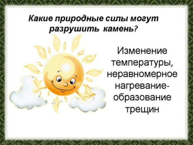 — Мы сегодня будем говорить о естественном разрушении камней в природе.