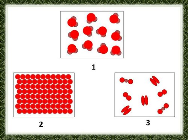 — Поднимите карточку с тем номером, где изображены частицы при охлаждении, при нагревании.