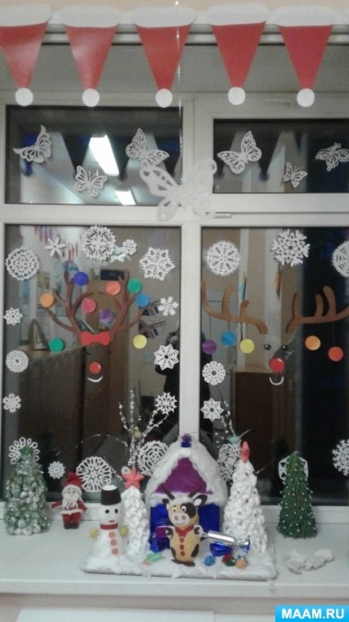 «Сказка на окне» — новогоднее оформление группы. «Лесная сказка» На поляне закружили Звери дружный хоровод — Мишки, зайцы вокруг елки Вместе встретят новый год. Дед Мороз спешит на праздник.