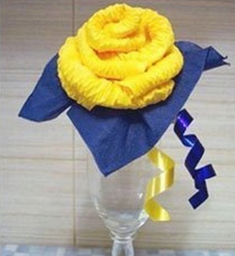 У основания бутон перетягивают лентой, при желании ее декорируют салфеткой другого цвета.