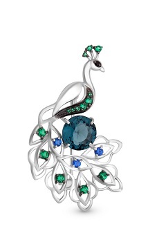 Брошь с фианитами из серебра 925 пробы, артикул 4100079559
