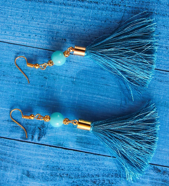 К акцентным изделиям относятся серьги-кисточки в классических расцветках. Они способны украсить собой многие дамские образы и сделать их более стильными.