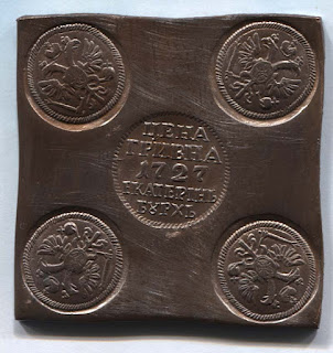 Гривна-плата. По нашему это 10 копеек. Вес 163, 8 грамм. Вот эту монету можно увидеть на крупных аукционах. Самый дешевый экземпляр стоит около 15 тысяч долларов.