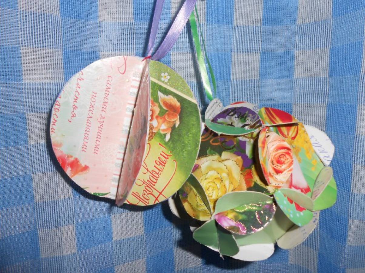 Красивые ёлочные игрушки из старых поздравительных открыток