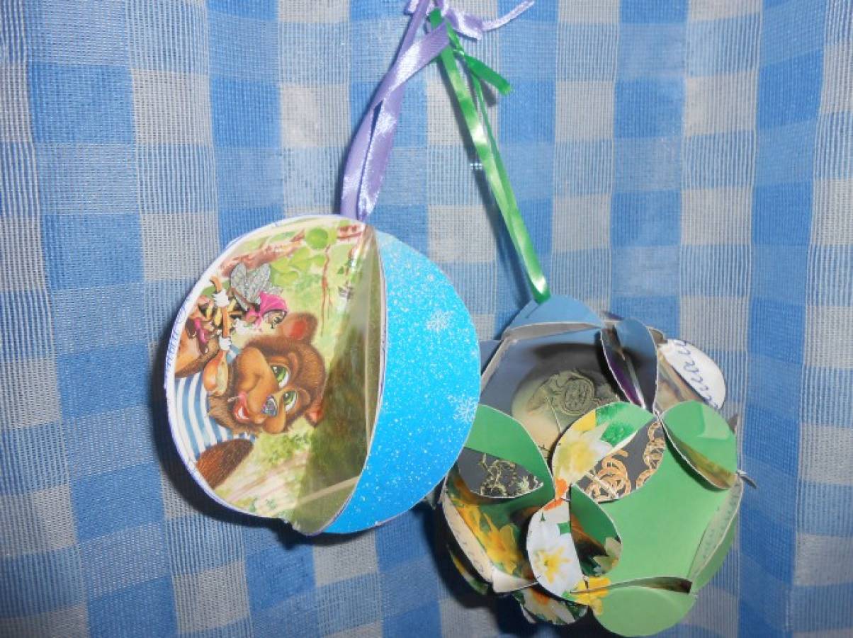 Из открыток склеила и другие шары. Буду рада если кому -то понравятся игрушки из открыток.