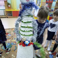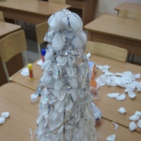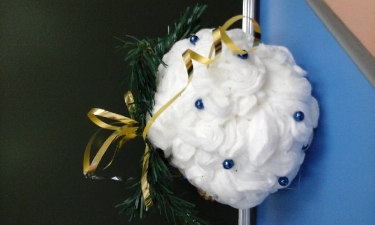 В том году был конкурс на «Лучший терем деда мороза». Я опять решила сделать из ватных дисков. И заняла 2 место.
