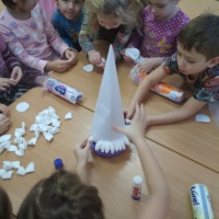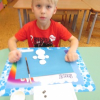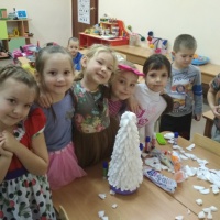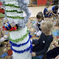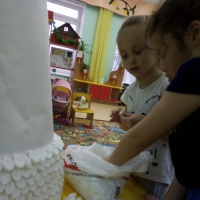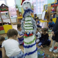 Создавая сказку в группе, я использовала самый минимум, это: ватные диски, клей пистолет, газета, ну и немножко бусинок и снежинок для декорации. На Новый год мне очень нравится делать поделки из ватных дисков. Посмотрите пожалуйста может вам понравиться. Первой моей поделкой был снеговик сыну на конкурс «Милый добрый снеговик…». Кстати мой снеговик занял первое место в конкурсе.