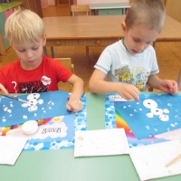 НОД по аппликации из ватных дисков в средней группе 4–5 лет «Снеговик из ватных дисков» Цель: научить изготавливать аппликацию из ватных дисков. Задачи: Образовательная и Развивающая. Учить выкладывать и составлять на листе бумаги изображения предмета из нескольких готовых.