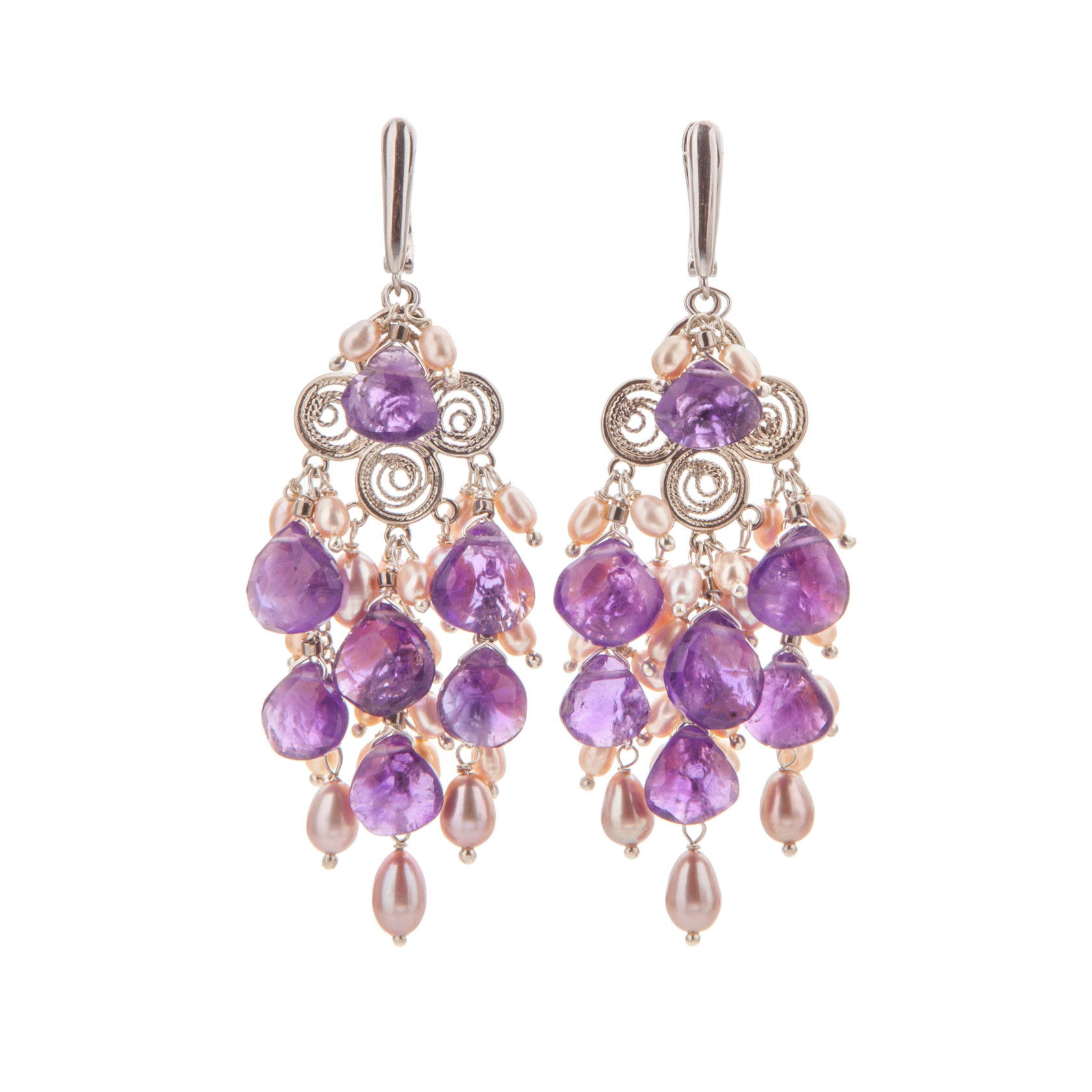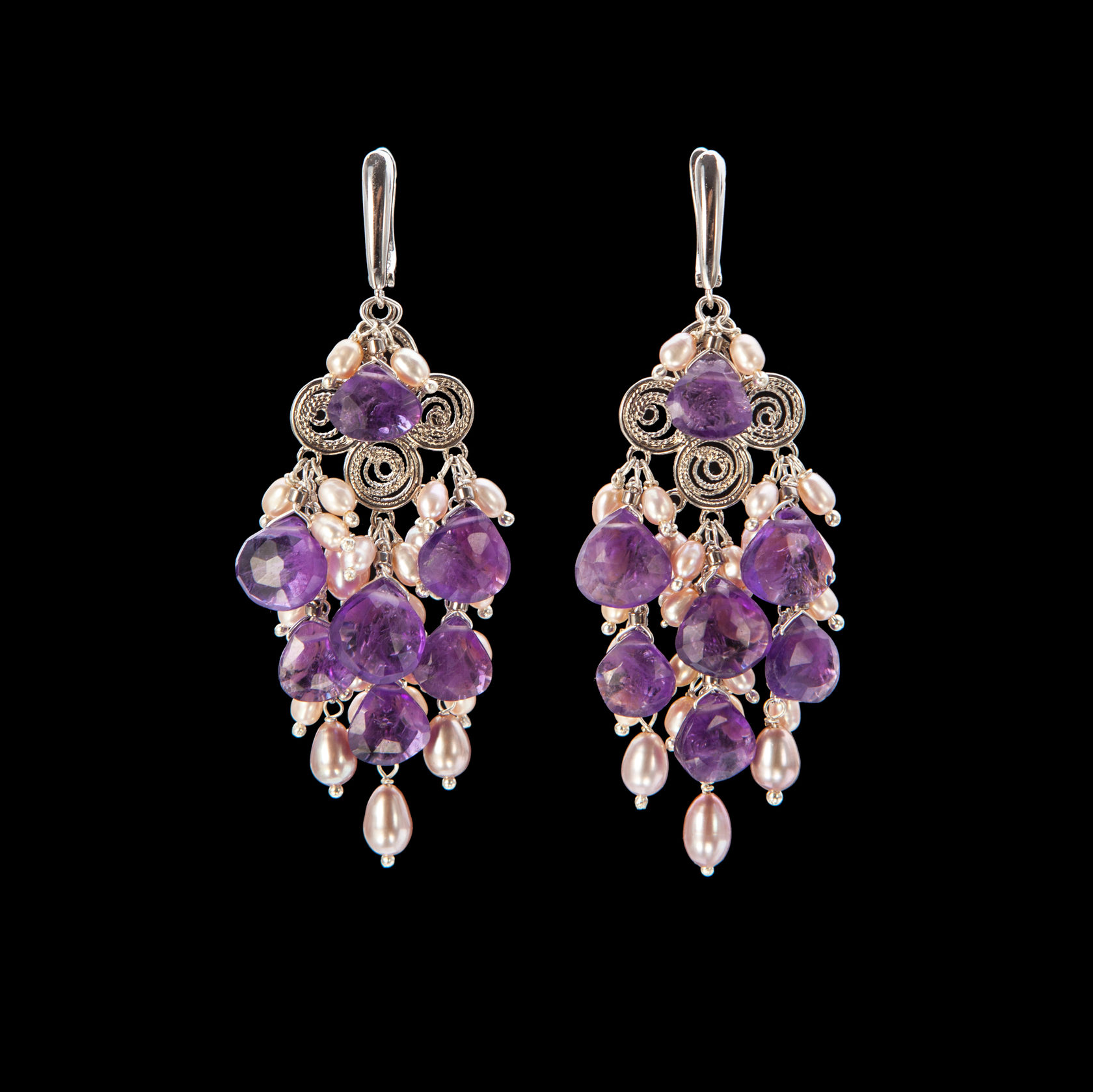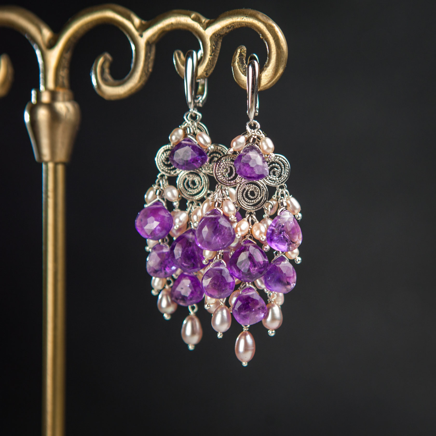 Серьги из аметиста и жемчуга