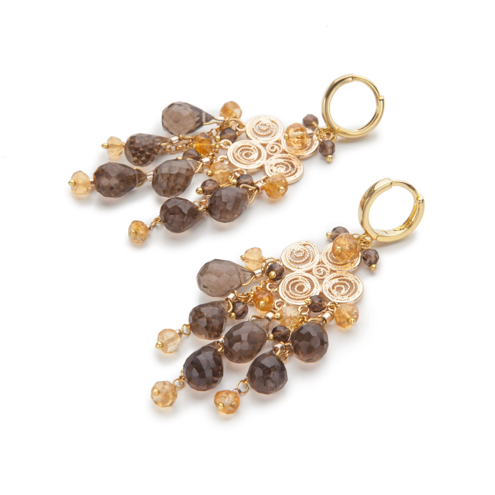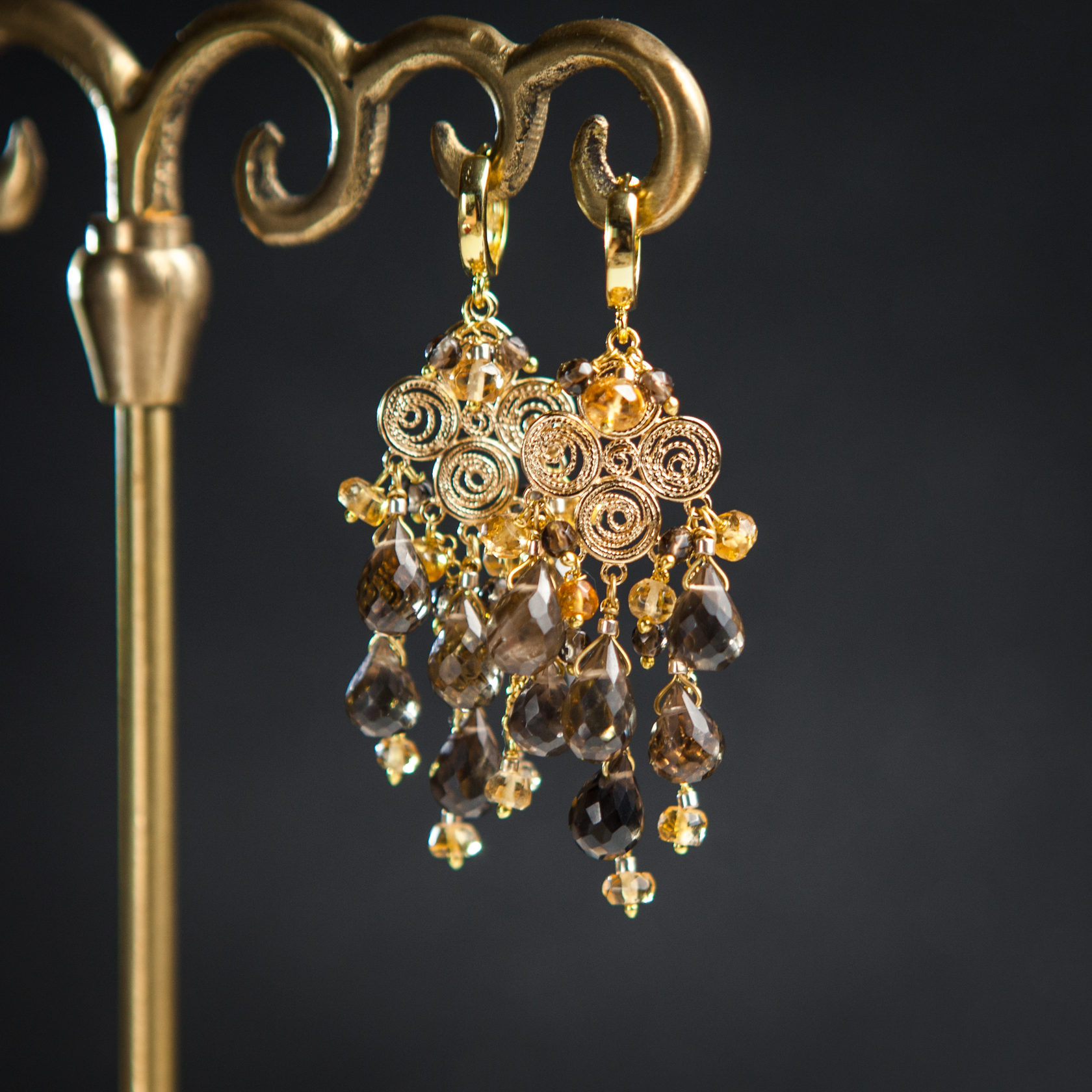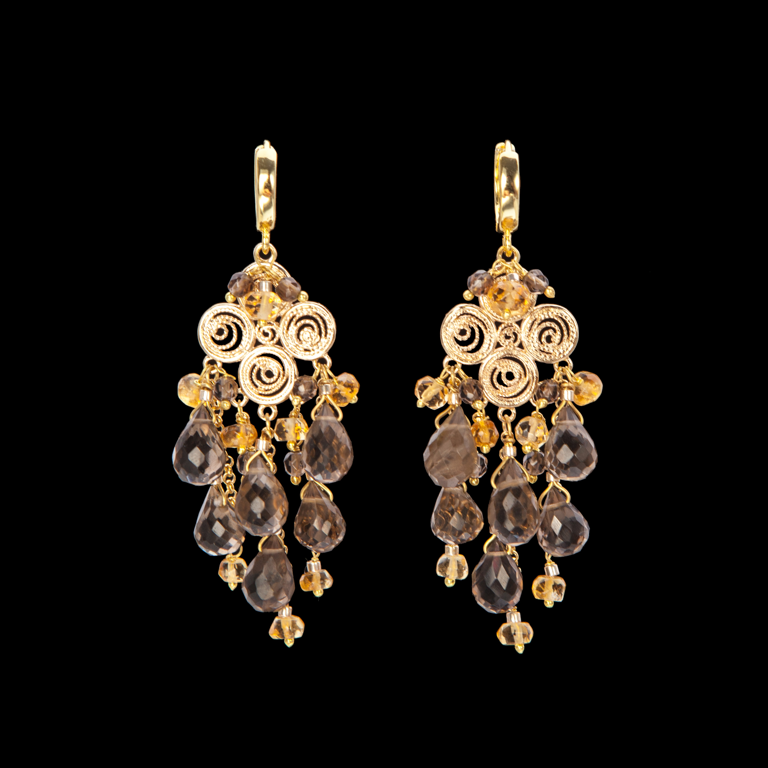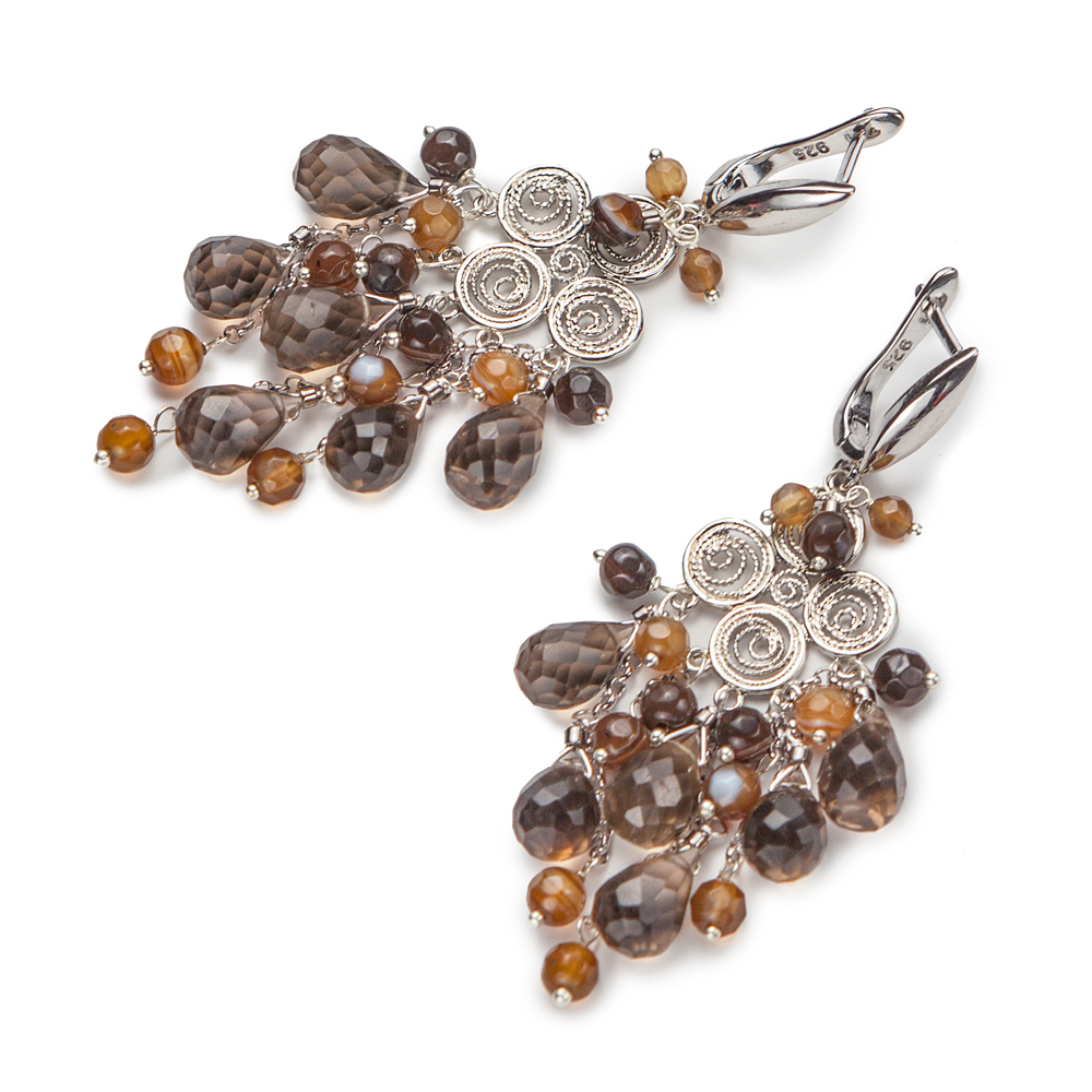 Серьги из раухтопаза и цитрина