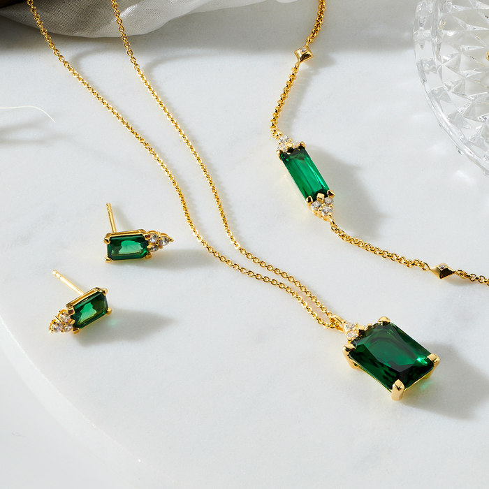 Желтое золото 750, изумруды круглой огранки по 0,13 и капли по 0,38 ct