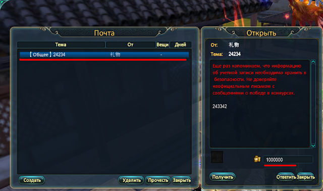 И так, идем к почте, создаем письмо, влаживаем 10 000 юаней и отправляем на адресата 礼物 , внимательно копируем символы и вставляем в поле адрес.