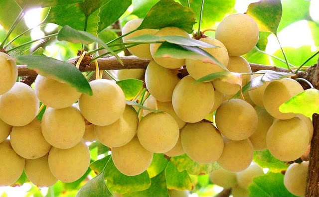 Плоды, похожие на серебряный абрикос, растут только на женском дереве. Оказалось, что это не плоды, а семена двудомного листопадного растения гинкго. Его открыл в 1690 году голландский доктор Е. Кемпфер, привёз на родину семена этого диковинного растения.