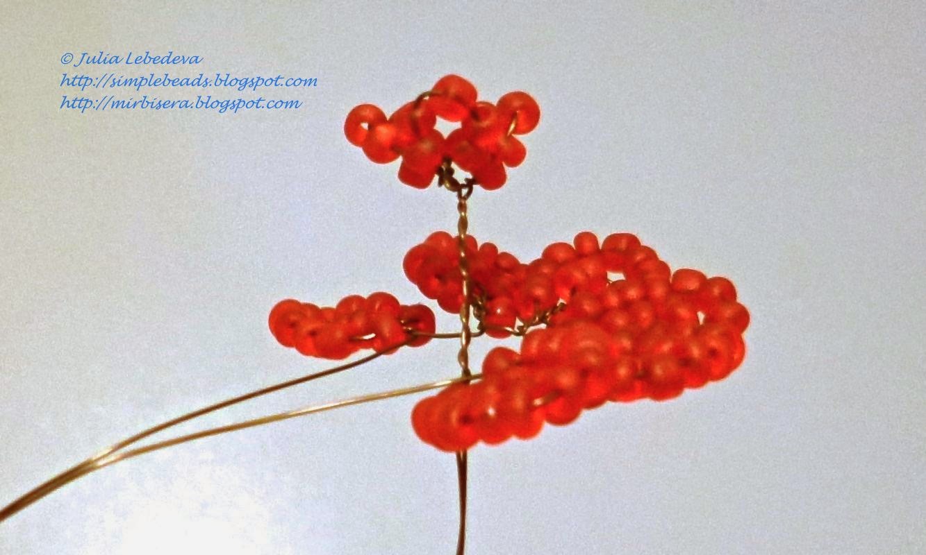а каждый из двух нижних листиков — из 15 рядов бисеринок на проволоке длиной 50 см.