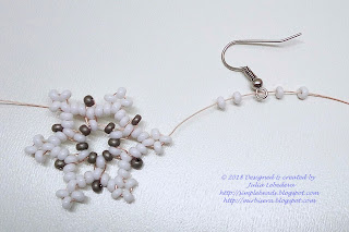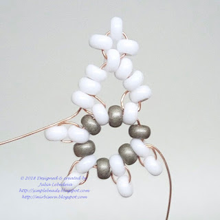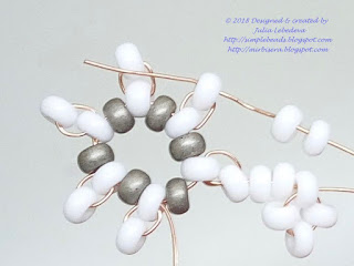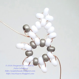 Далее повторяем последовательно Шаги 5 и 6 ещё пять раз, таким образом делая все остальные белые лучики снежинки с серыми бисеринками между ними.