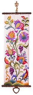 Рисунок Jacobean Bell Pull выполнен в стиле якобинской вышивки, но адаптирован для вышивки крестом .