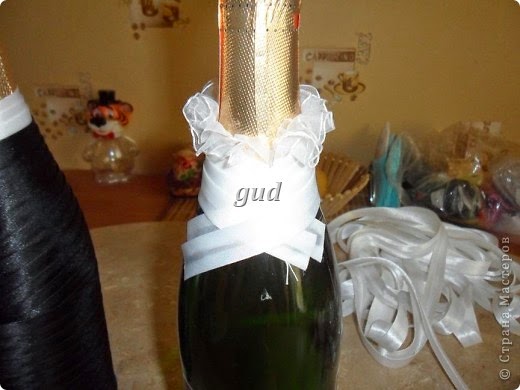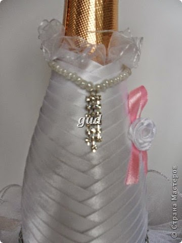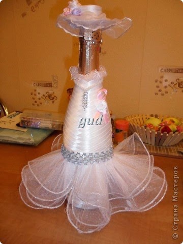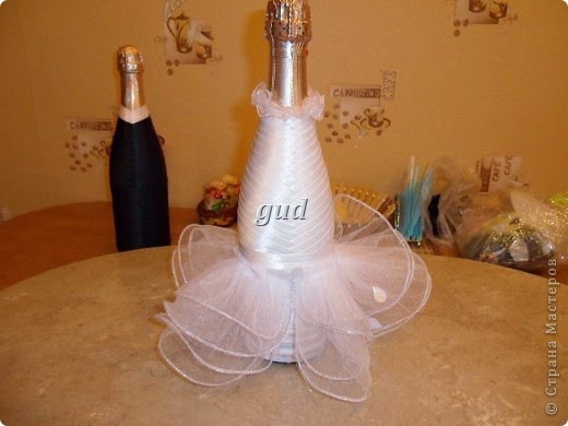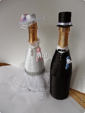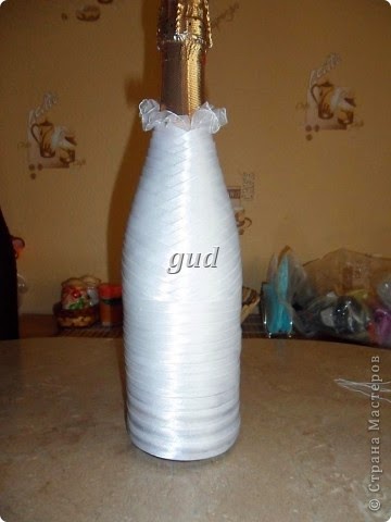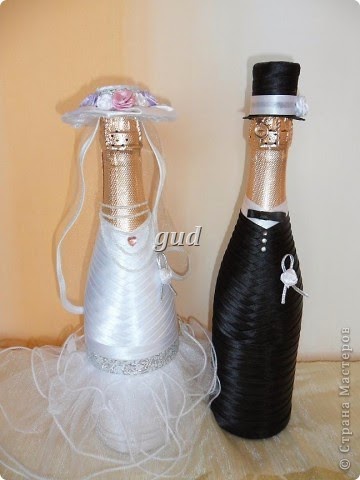 1. Вот такие свадебные бутылки можно сделать своими руками тем, кто как и я не очень дружит с шитьем.