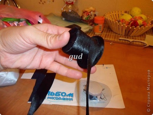 15. Обклеиваем цилиндр жениха все той же черной косой бейкой