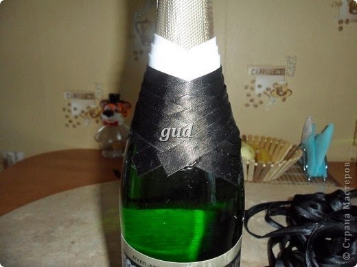 Основа. Как украсить бутылку шампанского на свадьбу косой бейкой / DIY