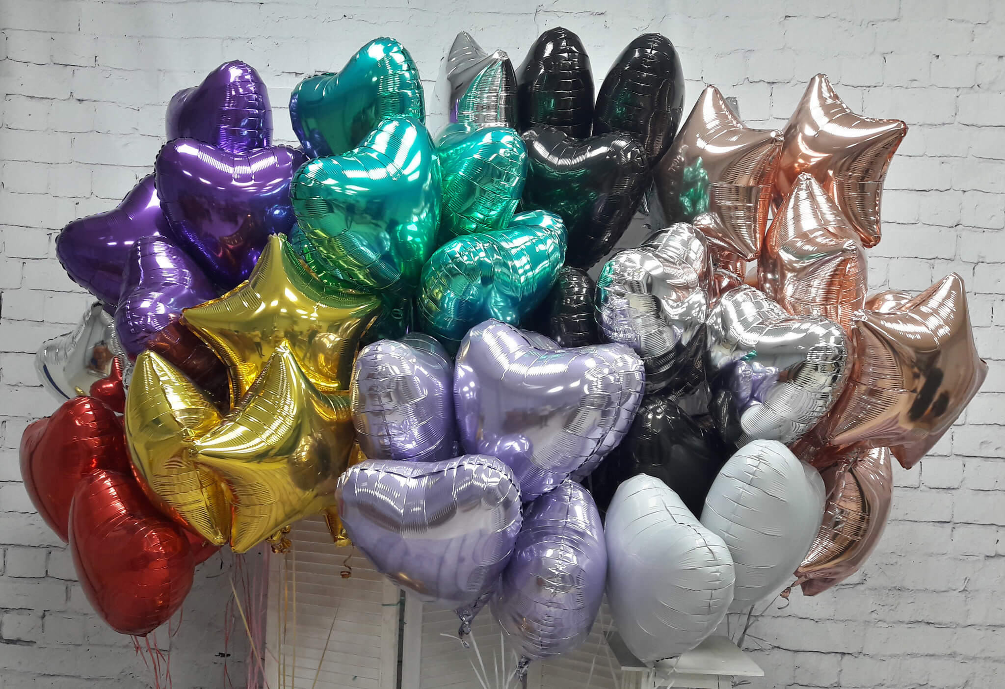 25 фольгированных звезд или сердец 46 см с бесплатной доставкой — 8750 руб.