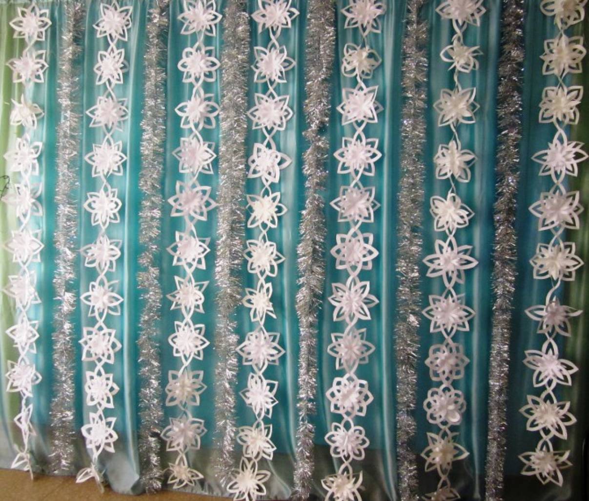 Что может быть проще: нарезаешь снежинки и нанизываешь их на нитку, просто и красиво.