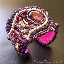 Вышивка бисером по коже — мамая плотная, потому — хорошо держит форму. Чаще такой техникой создаются маленькие, но очень изящные браслеты и ожерелья, а не холсты и панно.
