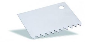 Самым простым приспособлением является кондитерская гребенка, изготовленная из белой жести, алюминия, пластмассы. Проводя гребенкой по гладкой поверхности смазанного кремом изделия, наносят линии, рисунок которых будет зависеть от размера и фасона зубчиков гребенки.