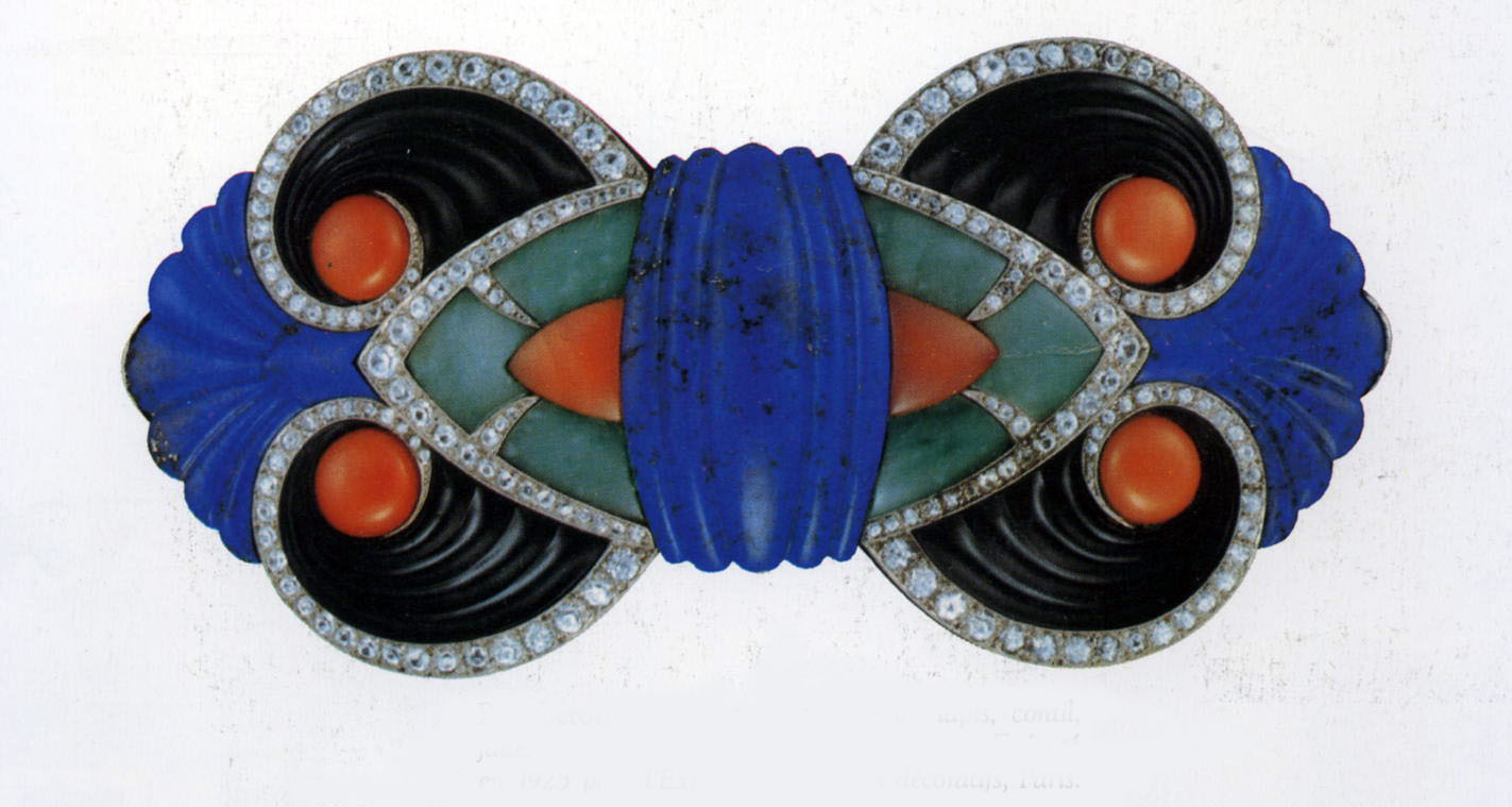 Появились броши-клипе (dress clip, fur clip) и сотуары (франц. «porter en sautoire», — «носить на спине, носить через плечо»), а также изысканные браслеты, в которых некрупные камни подчеркивали четкие линии плоских орнаментальных узоров.