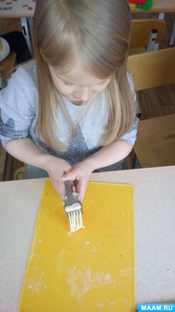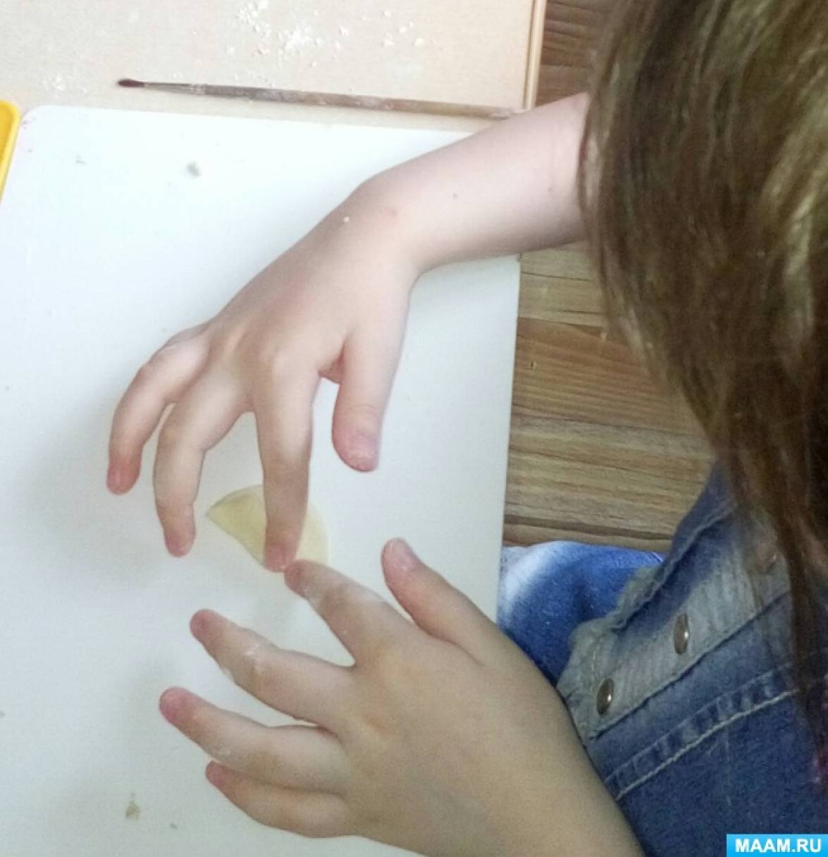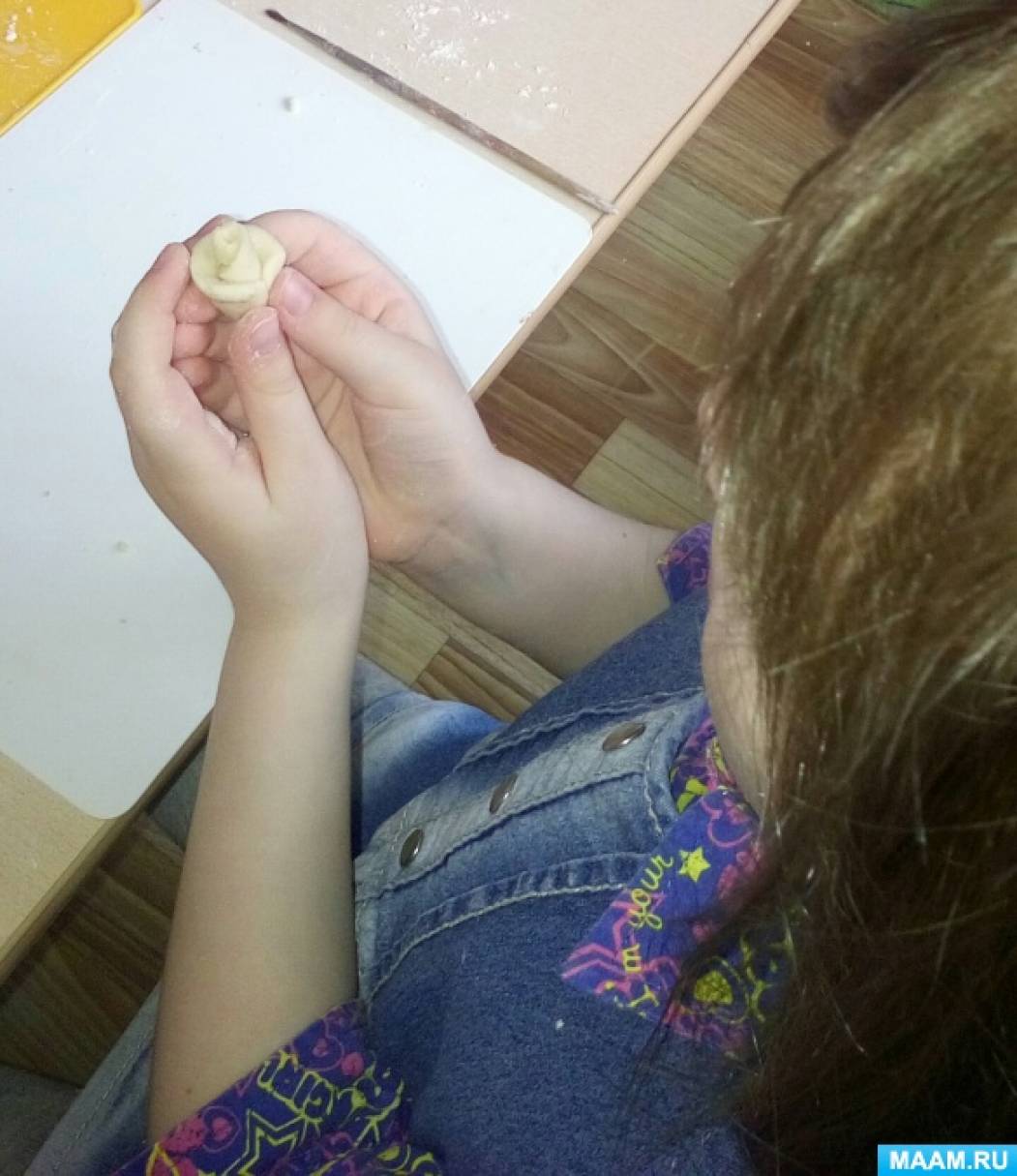 • Закрепить умение детей равномерно раскатывать тесто при помощи скалки; лепить отдельные детали раскатывать — скатывать, расплющивать, разглаживать границы соединения частей; использовать для работы природный материал;