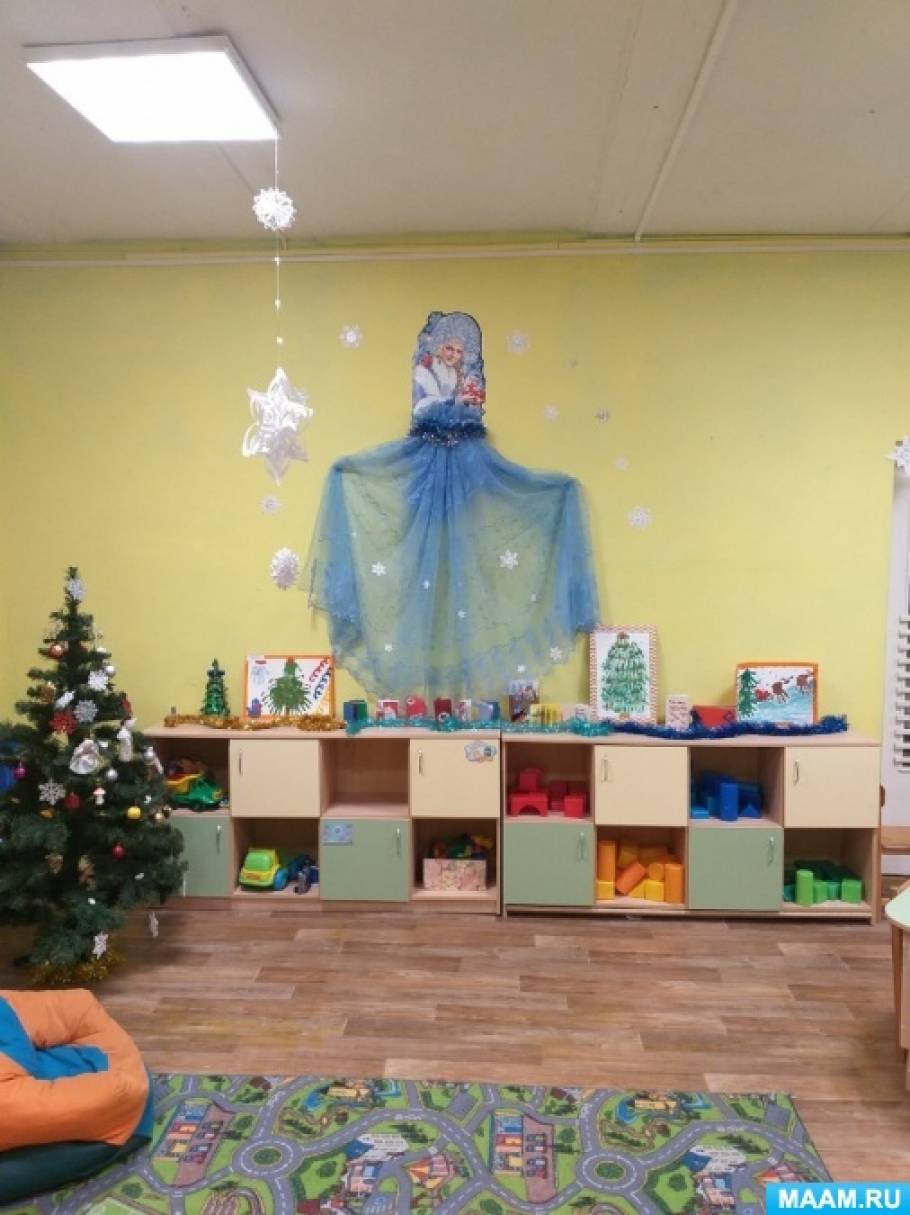 Самый долгожданный праздник для детей – это Новый год. И взрослые, и дети верят в чудеса. Поэтому атмосферу сказки и волшебства мы решили подарить через новогоднее оформление группового пространства по русско-народной сказке «Морозко».