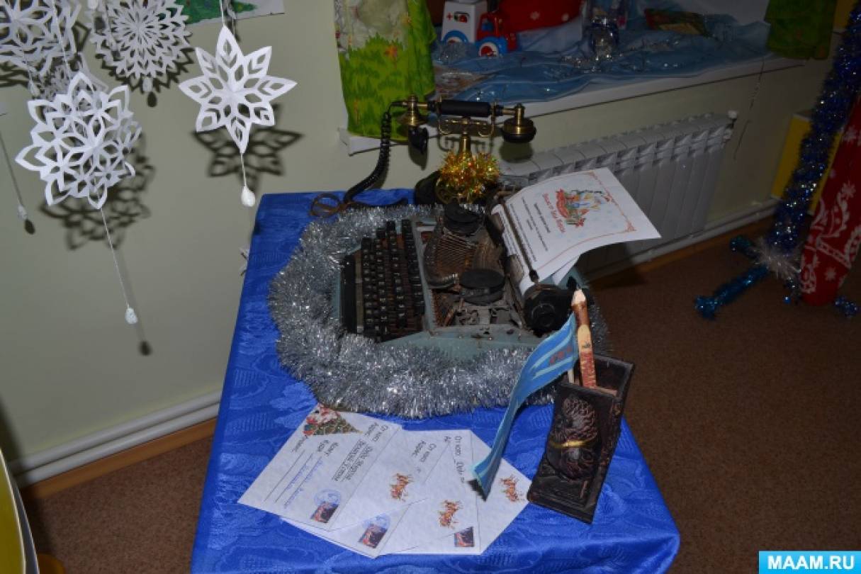 Своё офрмление мы представили так, как будто бы мы побывали в гостях у настоящего деда Мороза в Великом Устюге. Все дети и их родители были в большом восторге от наших задумок и активно нам помогали. Нами были использованы различные техники и материалы. У нас отлично сочетаются изделия покупные и изготовленные собственными руками.