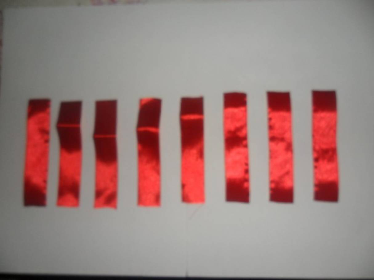 Крепким основанием для изготовления заколок будет две ленты из репса. Их нужно нарезать по два отреза для каждой заколки длиной по 8 см как показано на фото.