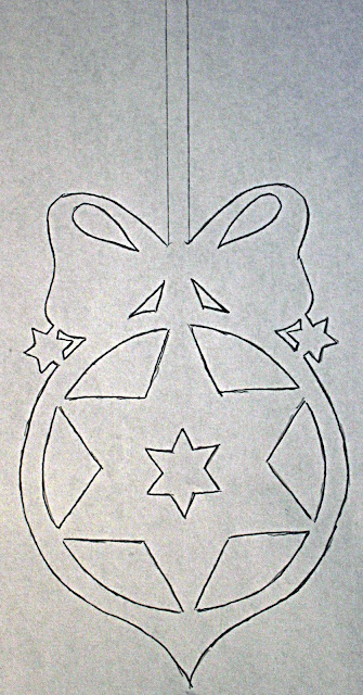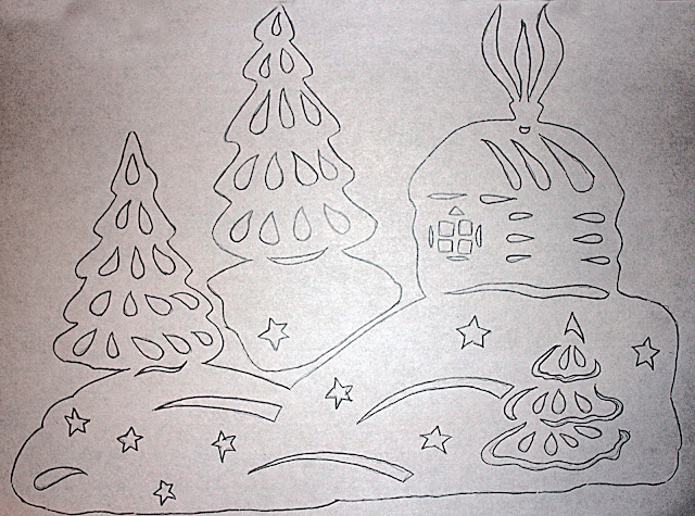 - На плотной бумаге или картоне нарисовать контур новогоднего рисунка.