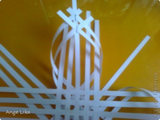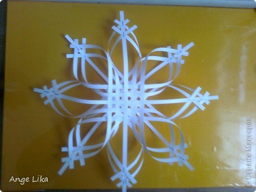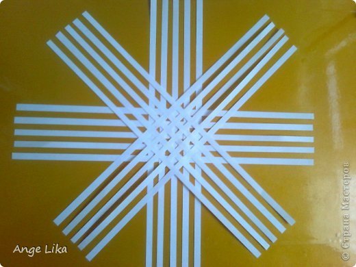 Мне понравились такие, очень красивые и оригинальные объемные снежинки, совсем не сложно сделать такие самому, немного терпения и у вас все получится. Для этого, нам понадобится много полосок из картона или плотно бумаги, одинакового размера. Начинаем раскладывать так, как на рисунке и переплетать