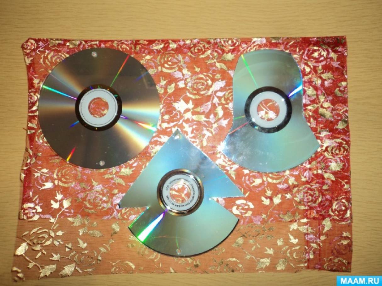Когда на веранде я наткнулась на пачку СД-дисков, то сразу поняла — это то, что нужно. Сколько всего не только красивого, но и полезного можно изготовить из этих бесполезных, на первый взгляд кругляшей.