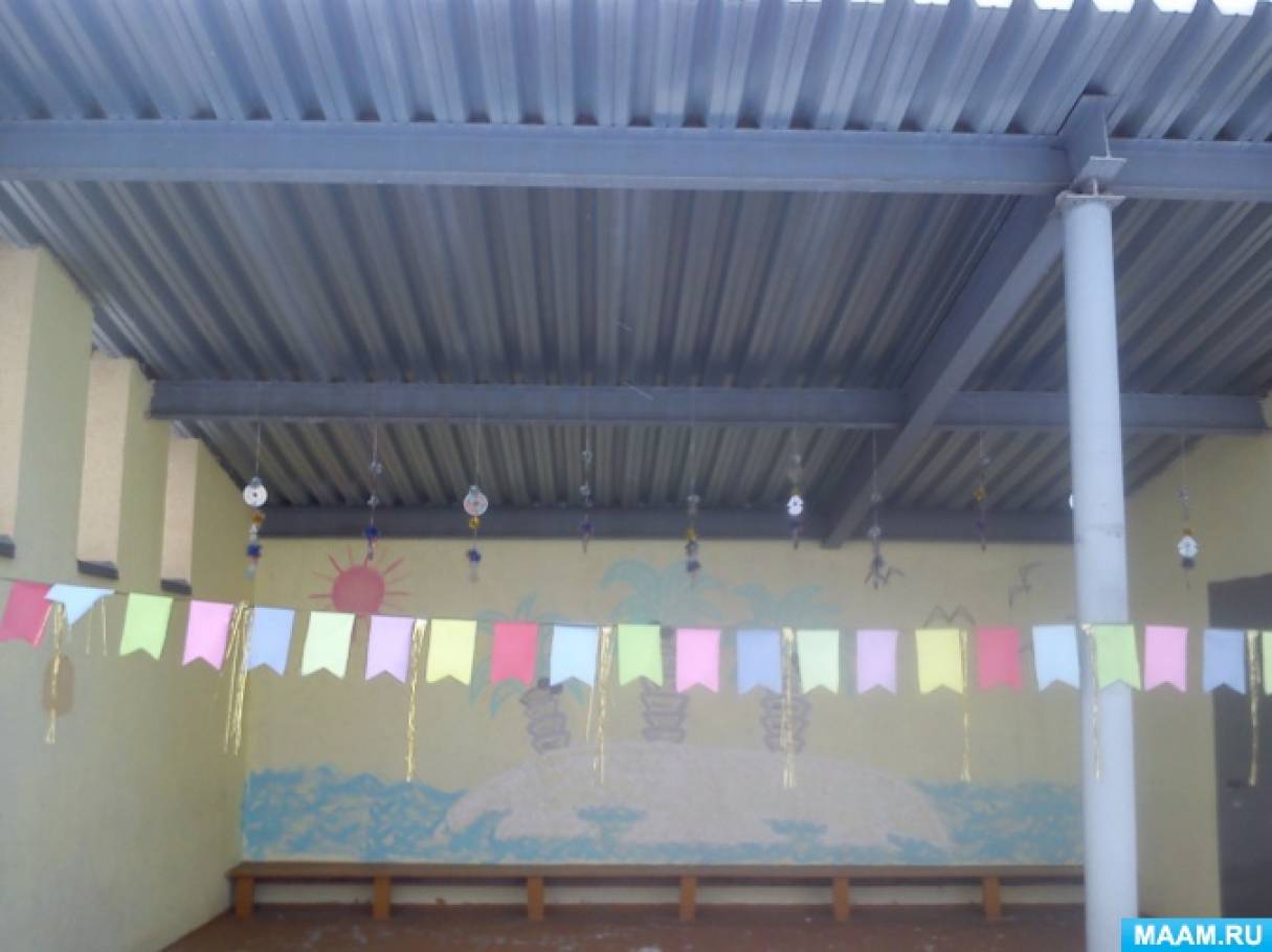 Оформление веранды на участке на тему «Лето» Уважаемые коллеги,доброго времени суток. Представляю вашему вниманию вариант оформления стены на веранде. Оформление детских веранд в детском.