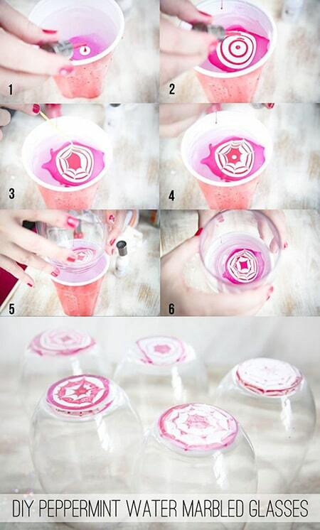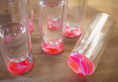 Очень важно определить оптимальную температуру воды. Учтите также то, что некоторые марки лака не расплываются по поверхности, а тонут или собираются в комки. Поэкспериментируйте, прежде чем сделать свой выбор и приступать к покраске стаканов