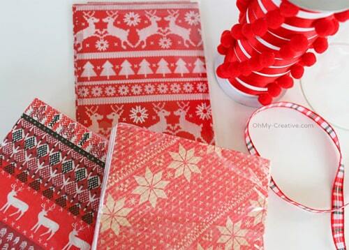 Все очень просто. Вам понадобятся плотные салфетки и тесьма в тон, а также клей Mod Podge или обычный школьный клей, разведенный с водой в пропорции 2:1.