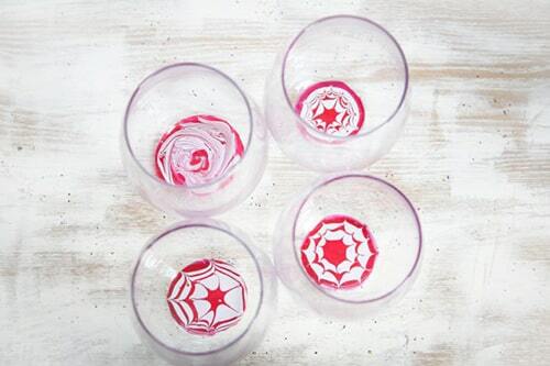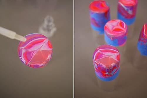 Прежде чем приступить к украшению следующего стакана, удалите остатки лака с поверхности воды.