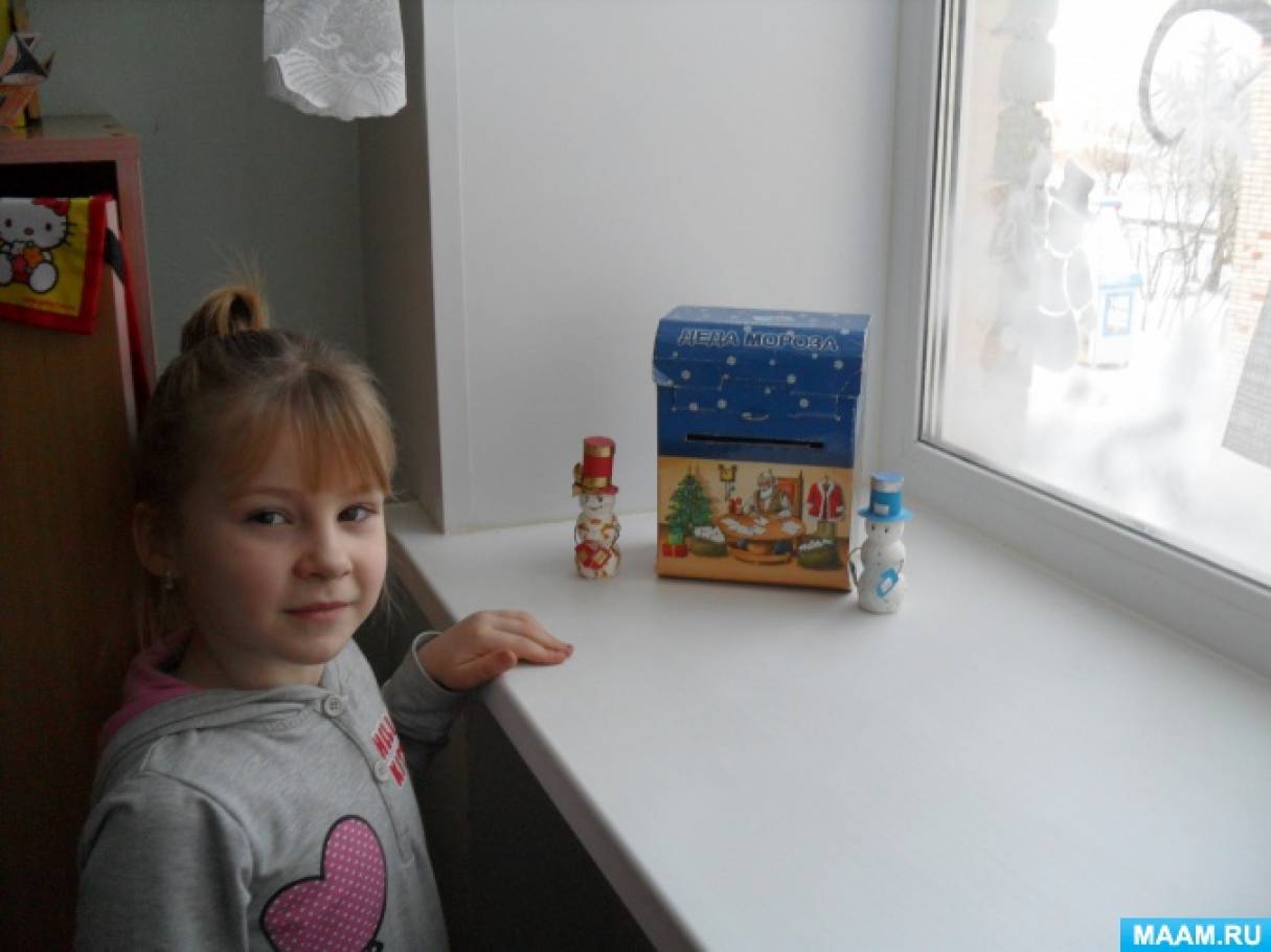 На подоконнике окна стоит почтовый ящик Деда Мороза, в него дети опускают свои письма, которые пишут дома вместе с родителями.